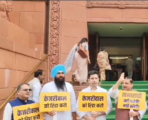 अरविंद केजरीवाल को तुरंत रिहा कराने की माँग को लेकर संसद में AAP सांसदों का प्रदर्शन…”संजय सिंह ने कहा, ”आप दिल्ली के चुने हुए सीएम की जिंदगी से खेल रहे हैं… इससे पता चलता है कि मामला सिर्फ उनकी गिरफ्तारी तक सीमित नहीं है, यह अरविंद केजरीवाल की हत्या की गहरी साजिश है.”प्रदर्शन के मौके पर आम आदमी पार्टी के राज्यसभा सांसद राघव चड्ढा और संदीप पाठक भी मौजूद रहे.