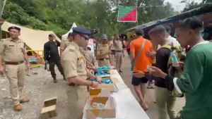 पौड़ी: नीलकंठ जाने वाले कांवड़ियों की सुरक्षा में लगी पुलिस अपने फर्ज के साथ अतिथि देवो भव का धर्म भी निभाने का प्रयास कर रही है। लक्ष्मण झूला में एसएसपी लोकेश्वर सिंह और एडिशनल एसपी जया बलूनी की पूरी टीम कावड़ियों को पानी और खाद्य सामग्री उपलब्ध करा कर नीलकंठ की ओर रवाना कर रही हैं।